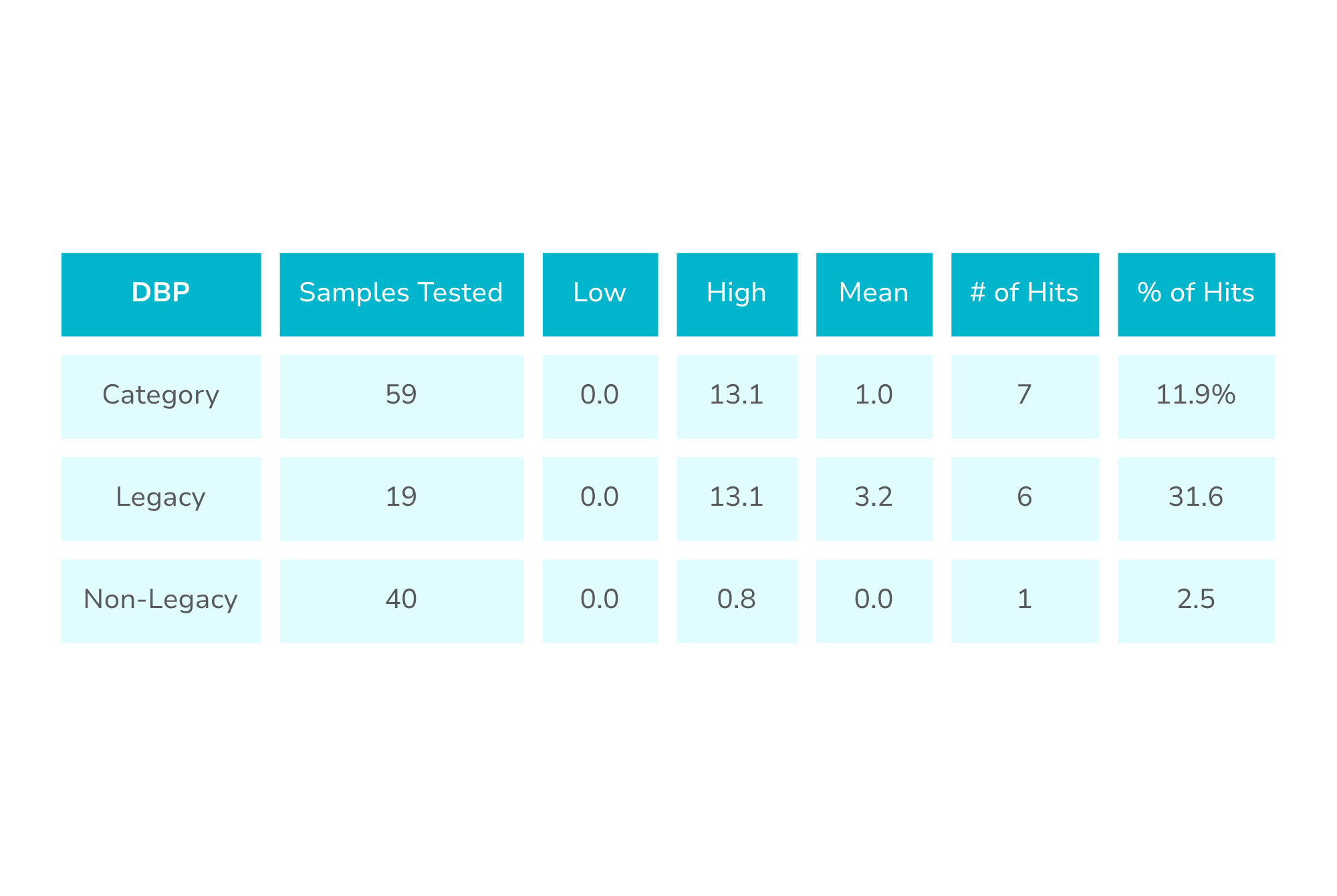 We tested 59 infant formulas, including 19 Legacy products from top-selling retail and WIC-approved brands, and 40 Non-Legacy products.